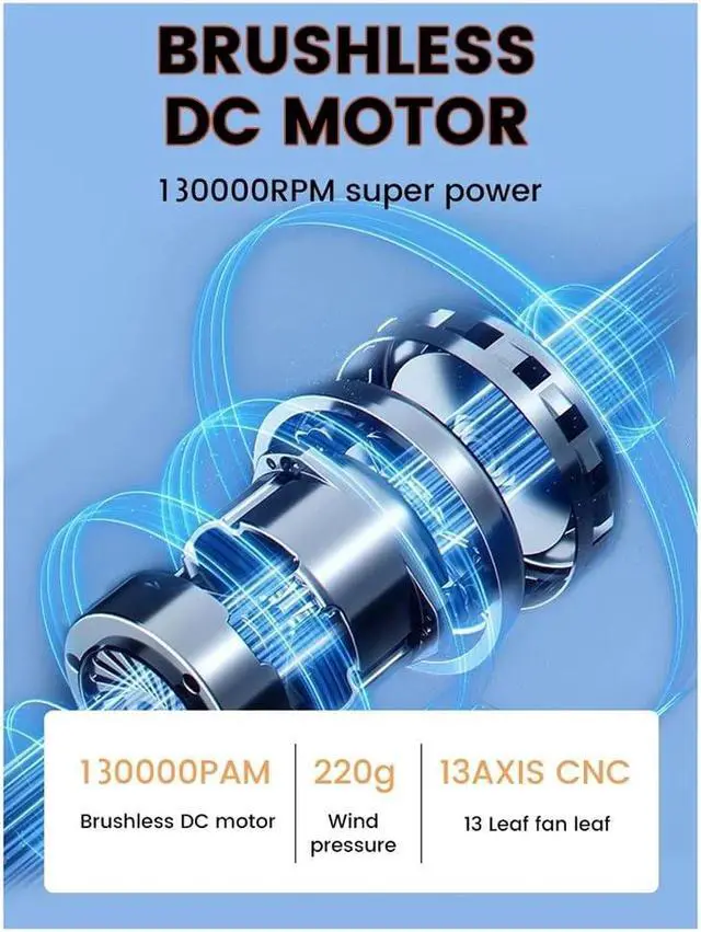 1. 130000 RPM turbo fan, brushless motor, powerful power.