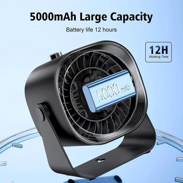 [Long-Lasting Battery with LED Display]: Equipped with a 5000mAh battery, this fan ensures up to 12 hours of continuous operation at the lowest setting. The Type-C fast charging and a precise LED display keep you informed of speed and battery status.