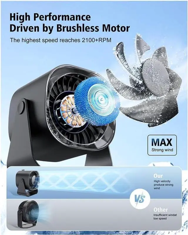 [Compact and Efficient]: This space-saving fan easily fits on desks and nightstands, making it perfect for offices and bedrooms. Despite its small footprint, it powerfully circulates air, maintaining a cool environment.