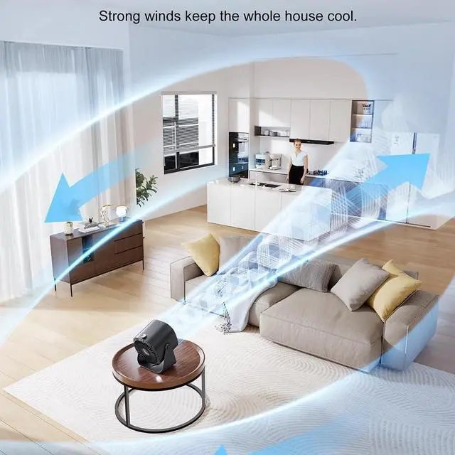 [Effective Air Circulation]: Designed to enhance indoor air circulation, this portable fan delivers wide, long-range air , ensuring your space remains cool and comfortable throughout the day.