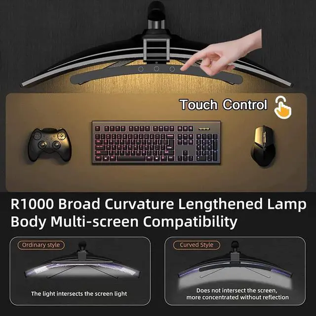 R1000 slightly curved design: With R1000 curvature, the smaller the curvature, the larger the curvature of the screen, and the 550 mm elongated lamp body design can fit displays with different curvatures and thicknesses. The lamp tube and holder are made of an alloy, with fine workmanship and high quality. The ideal choice for children, students and office workers.