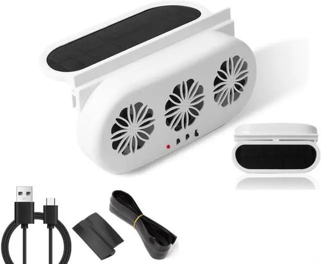 Solar Powered Car Exhaust Fan with USB Power Supply Three Motor Design High Speed Ventilation Air Cooling System for Sedan SUV Truck Taxi(White)