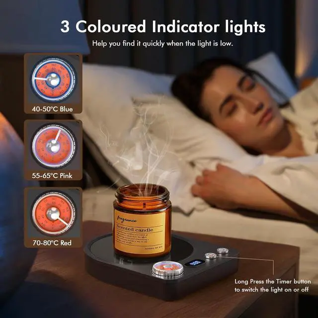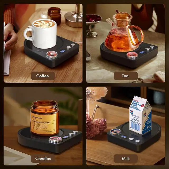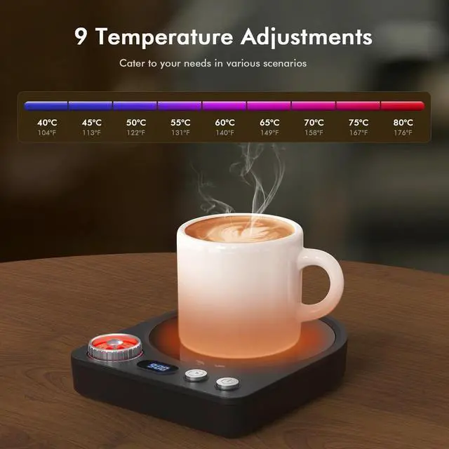 9 Temperature Settings: The coffee cup warmer has 9 temperature settings 40-80. The beverage hot plate provides you with coffee, milk, hot and fresh chocolate with every sip