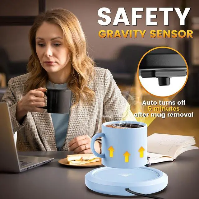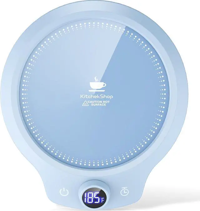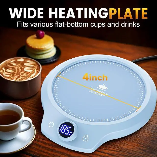 Coffee Mug warmer - 4 Temp Settings & 1-12H Timer, Fast Heating Cup Warmer Plate for Desk Auto Shut Off, LED Display Smart Candle Wax Warmer - Ideal Beverage Warmer Gift for Coffee, Tea (Light Blue)