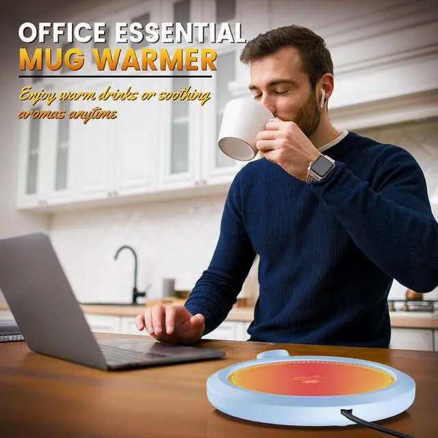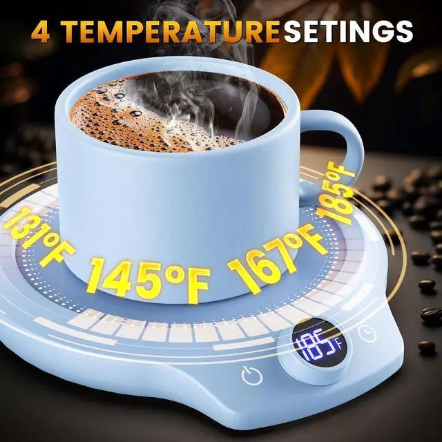 Fast Heating Mug Warmer - 4 Temp Settings & 1-12H Timer, Coffee Cup Warmer Plate for Desk Auto Shut Off, Ideal Beverage Warmer Gift for Coffee, Tea, Milk (Blue)