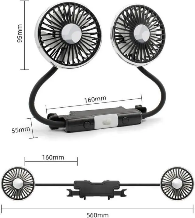 *Part Name: Rear Seat Dual-Head USB Car Fan
