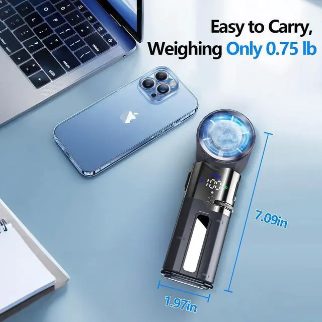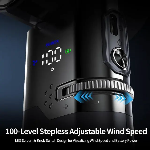 9000mAh Large Battery + Power Bank FunctionThis portable handheld turbo fan is equipped with a 9000mAh long-lasting battery, allowing for extended use without frequent charging. Adopts a new 2 in 1 design, It has both mobile power and fan functions. The battery life is 7-15 hours (depending on wind speed), and the built-in retractable, concealed charging cable is One-touch storage, making it suitable for outdoor activities or emergency power needs.