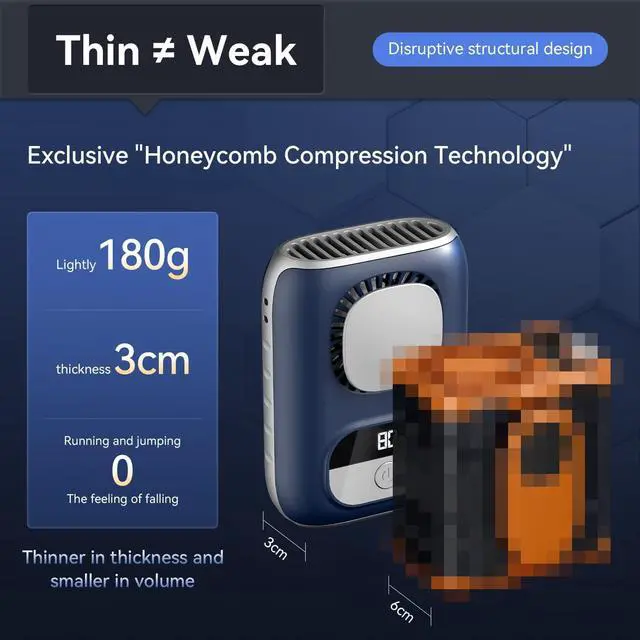 Stable & Versatile Across ScenesThe entire fan weighs only 180g with a thickness of 3cm, being lightweight and portable with no wearing burden. Made of military-grade ABS+PC shatter-resistant material, it has passed IPX-level waterproof, sweatproof, dustproof, and shockproof tests, fearless of complex outdoor environments, durable and adaptable to various scenarios, functioning stably both indoors and outdoors.