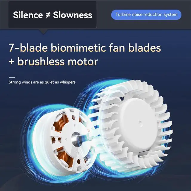 Powerful Wind & Efficient CoolingAdopts the 2025 upgraded brushless motor with a rotation speed soaring to 10500RPM. Combined with 7 bionic fan blades and patented turbine compression technology, it generates high-speed airflow of 14m/s, instantly dispelling body surface heat with a maximum cooling range of 24, quickly creating a cool sensation.