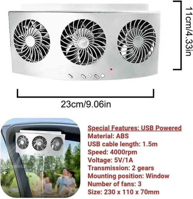 2. Solar-Powered: This solar-powered air circulation fan improves ventilation by increasing exhaust speed, effectively cooling your car's interior. It's an eco-friendly and cost-effective solution that helps keep your car cool and comfortable.