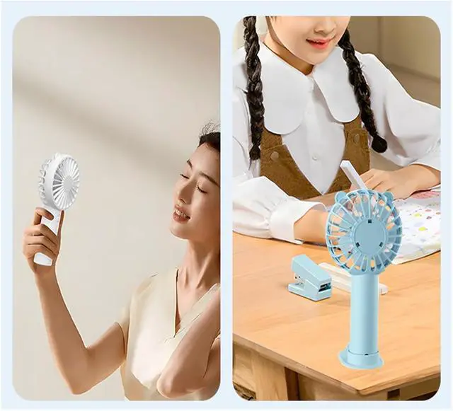 This portable handheld fan offers convenient personal cooling solution for various situations. The fan features three adjustable speed settings that allow you to customize airflow intensity based on your needs. Its rechargeable battery can be powered through multiple sources including computers and power banks, providing flexibility in charging options.