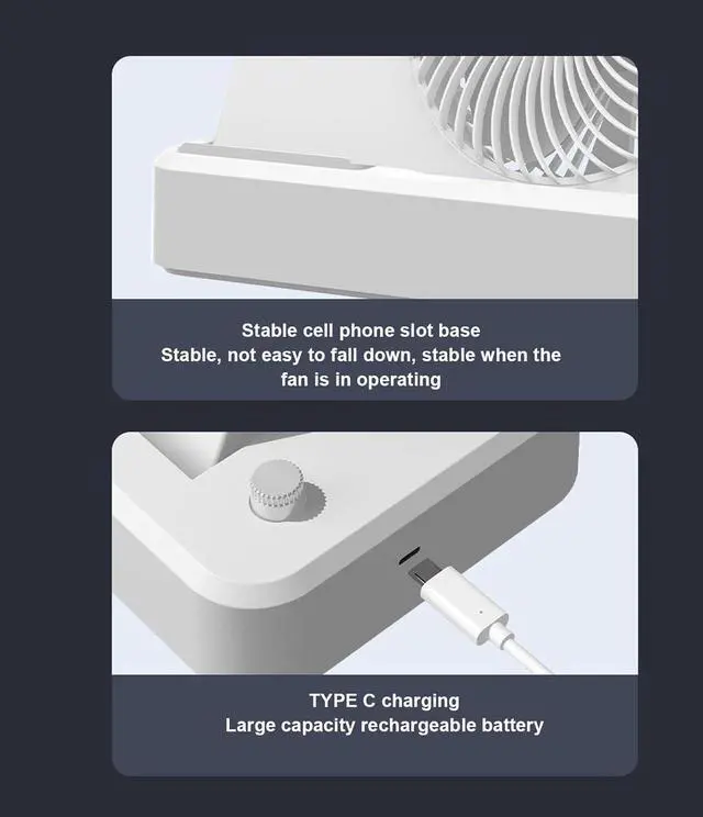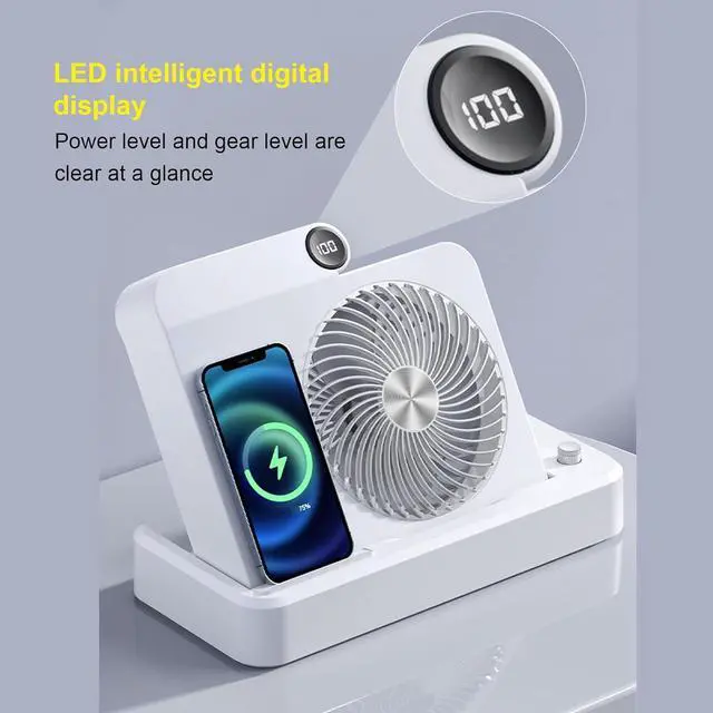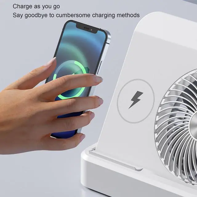 [Wireless Charging for Smartphone] This desk fan comes with an integrated wireless charging base, allowing you to recharge your phone while enjoying a cool breeze, for dorms and home use.