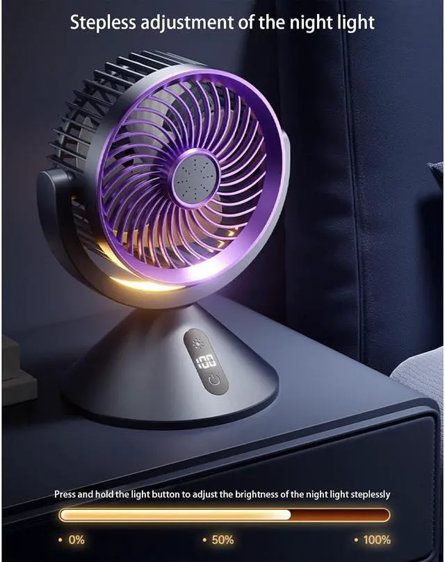 This fan can be easily adapted to a variety of environments, such as office, bedroom, kitchen, camping trips, and travel
