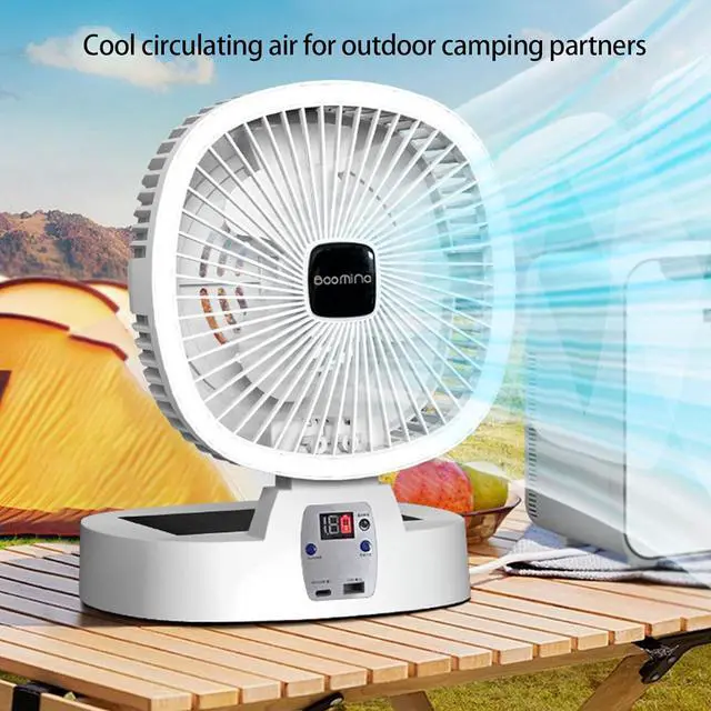 Rechargeable portable fan with 5000mah USB battery offer quiet cooling, featuring a oscillating airflows and foldable design for easy storage anywheres.