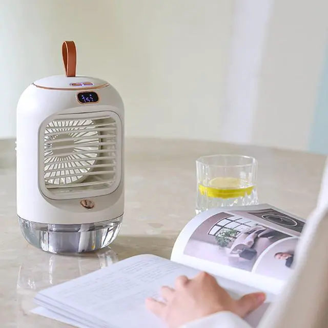 Portable Fan 3600mAh Battery Powered Hand-Held Desktop USB Fan Spray Wet Fan 3 Speeds Electric Fan With Night Light