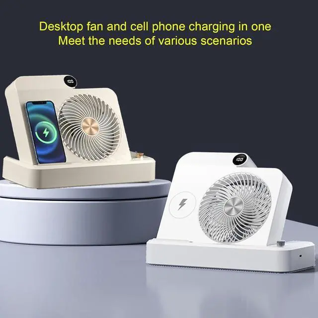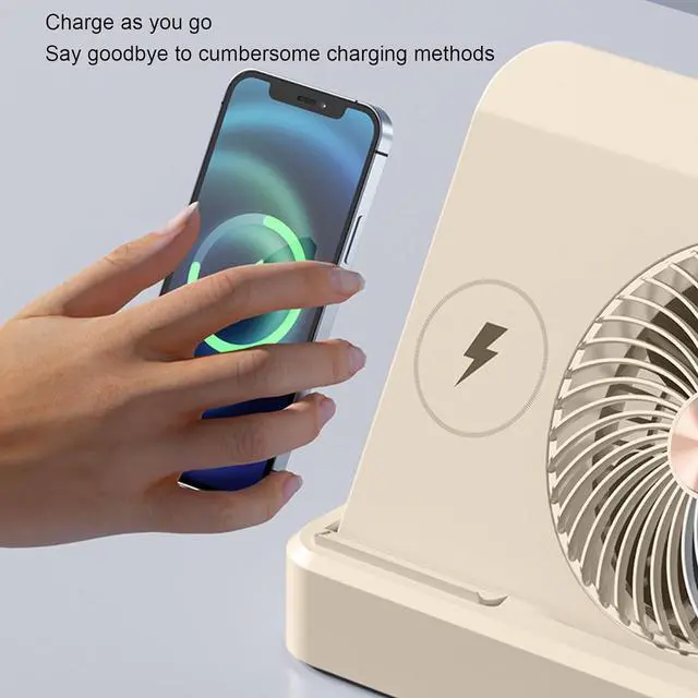 [Wireless Charging & Cooling Combo] This innovative desk fan combines a powerful cooling device with a wireless charging station, allowing you to charge your smartphone while enjoying a refreshing breeze. perfect for dorm rooms, offices, or bedside tables, this multifunctional fan keeps you and your devices powered up simultaneously.