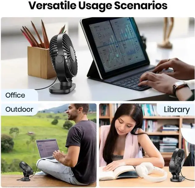 Adjustable Wind We have taken into account your various needs, the fan head can rotate vertically from 0 to 360 degrees, providing the most suitable angle wind to quickly cool you down.