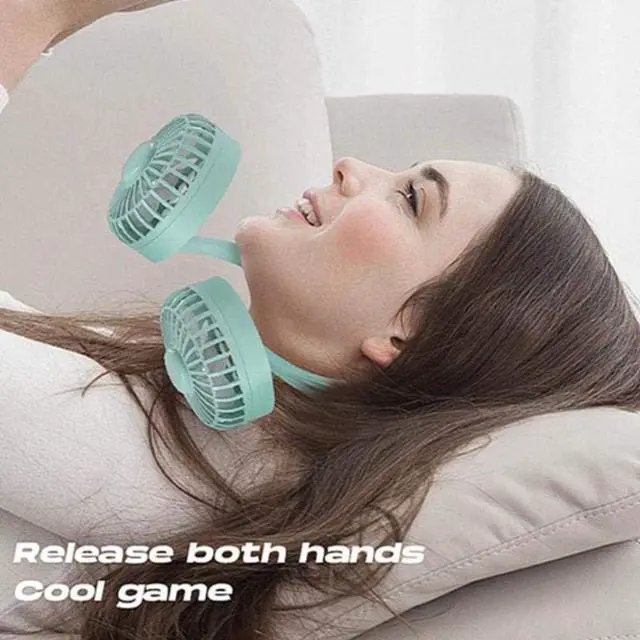 Portable Fan Hanging Neck Fan USB Rechargeable Neckband Sport Fan Portable Personal Wearable Neckband (Fan)(Color: Green)