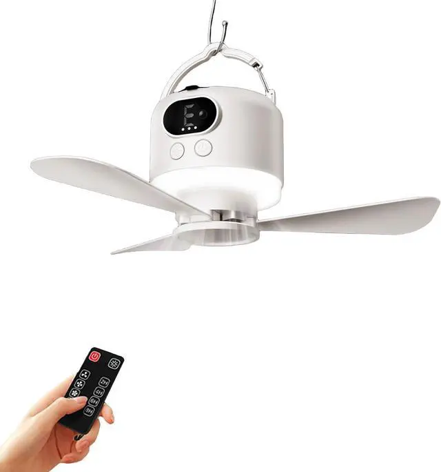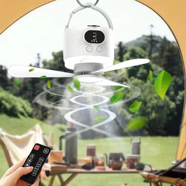 the convenience of USB rechargeable remote controlled ceiling fan with detachable Bladee, featuring powerful 10400mAh battery for extended outdoor use.