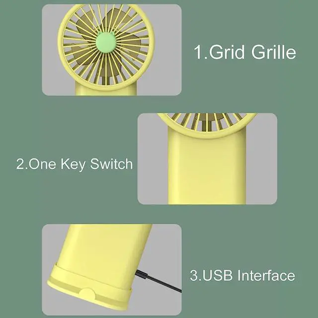 USB Charging: Handheld Fan Rechargeable uses a USB connection, it is compatible with any USB port, such as a computer, power bank, car charger, or any other device with a USB port.