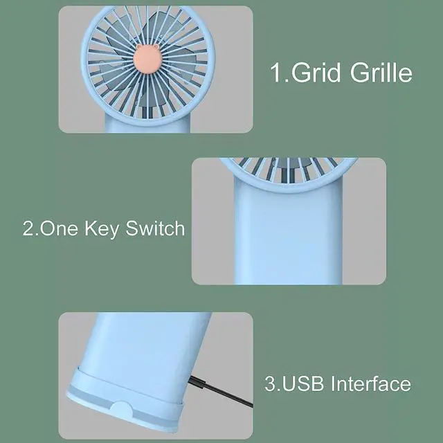 USB Charging: Handheld Fan Rechargeable uses a USB connection, it is compatible with any USB port, such as a computer, power bank, car charger, or any other device with a USB port.