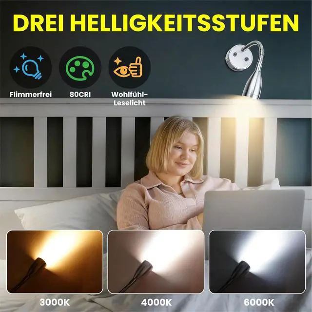 • 3-Color Temperature & Dimming ControlEasily switch between warm white (3000K), neutral white (4000K), and cool white (6000K) to create the perfect ambiance for any activityfrom cozy reading to focused tasks. The dimmable function lets you adjust brightness to match your mood and save energy.