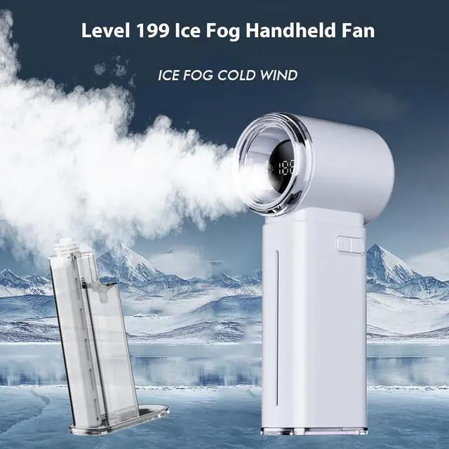 Stay cool with the Portable Misting Fan featuring 3500mAh rechargeable battery, 1-199 adjustable speeds, for travel, outdoor activity, or indoor comfort