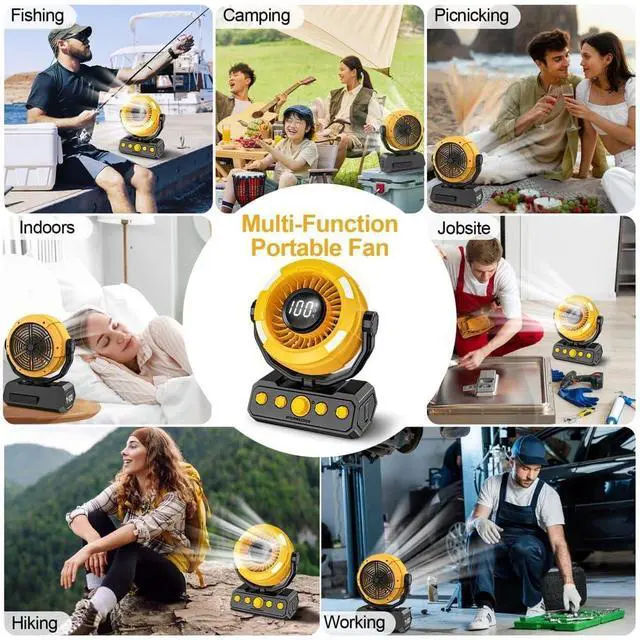 • 20000mAh Rechargeable Multifunctional Camping Fan: Massive Battery Capacity 20,000mAh rechargeable battery for long-lasting power. Ultra-Long Runtime Up to 80 hours on low speed, 15 hours on max speed.