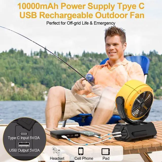 4-in-1 Portable Fan Rechargeable, 10000mAh Battery Powered Camping Fan with Timer & Light for Outdoor, Tent, Fishing, Jobsite,Orange