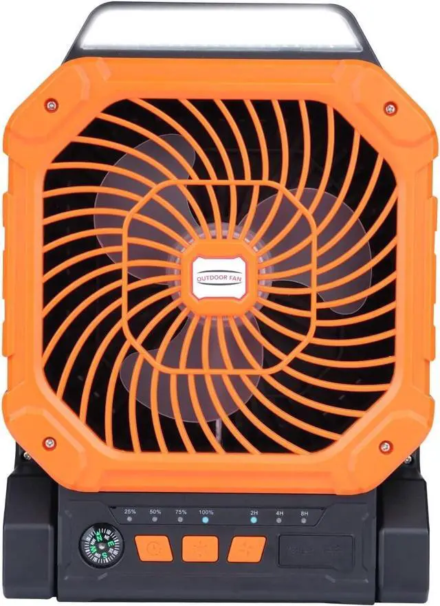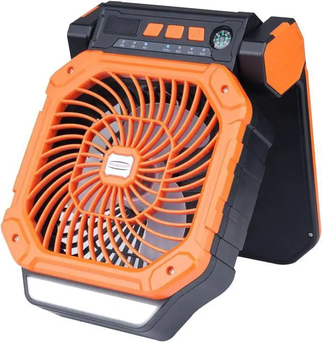 Designed with durable ABS. This multi-functional device combines 3 levels of LED light, 2/4/8H timer, and quiet operation to provide a versatile cooling and lighting solution in rugged environments