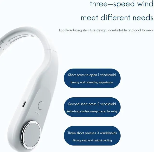 Foldable and PowerfulUpgraded neck fan can be folded easily by pressing the lock button on the side. Built-in 3600mAh polymer battery The USB rechargeable fan can be used continuously for 40 seconds on a full charge. Advanced dual turbo and large air vents deliver powerful 360 degree circulation. Portable