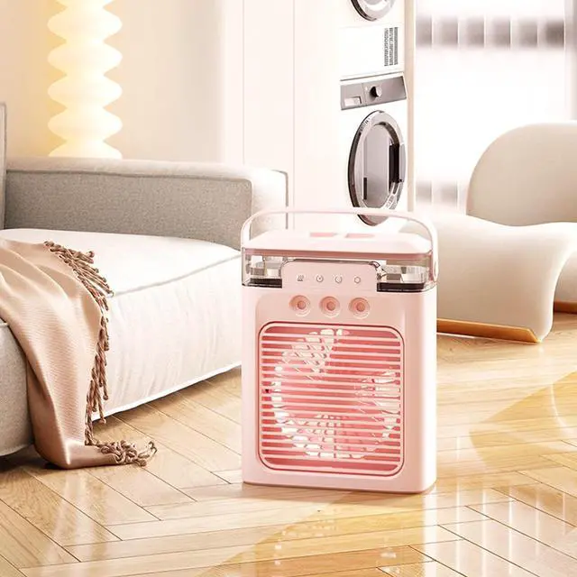 for bedside cooling, desktop workstations comfort, or vehicle use during travels, blending misting functionality with atmospheric mood lighting