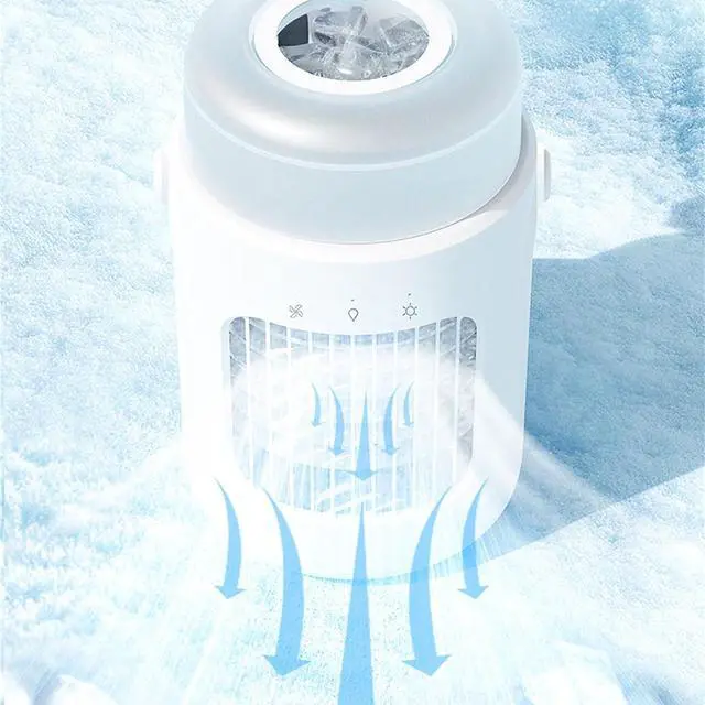 cooling relief with this portable air cooling device featuring mists and USB rechargeable design, combining evaporative cooling with humidification for enhanced comfort in dry, hot environments