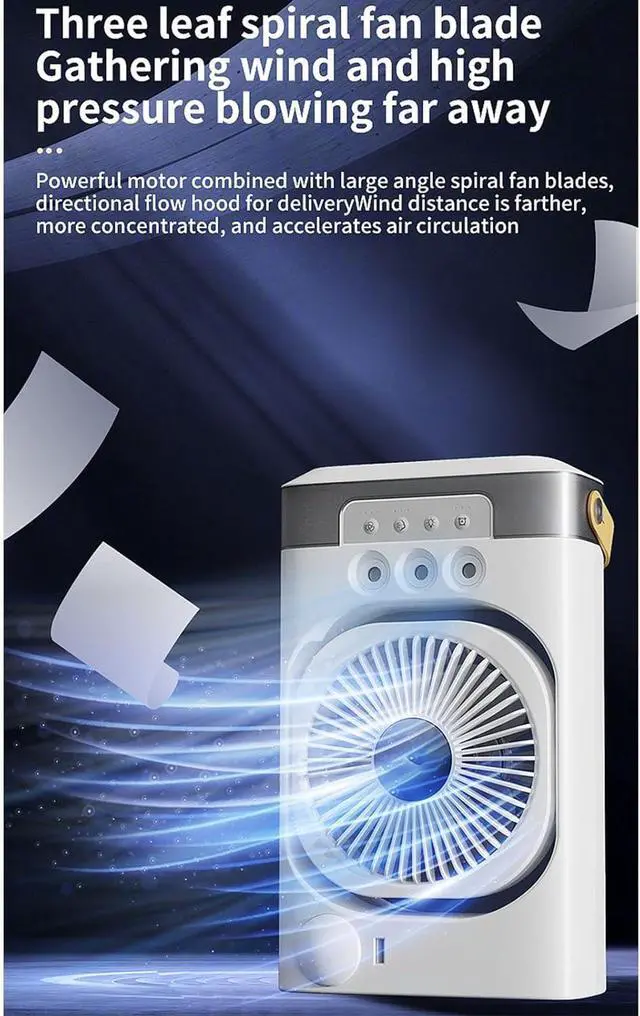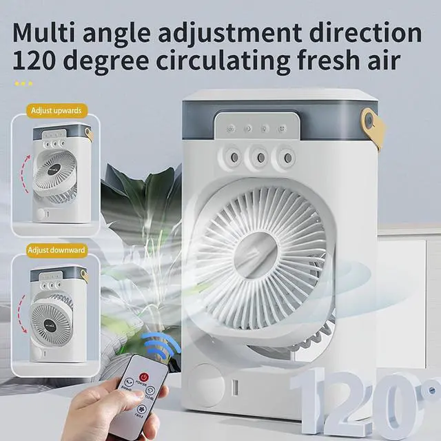 • This portable mists fan combines cooling airflows, adjustable humidification, and colorful LED lighting in a small design with 3 speed modes and 120° directional control