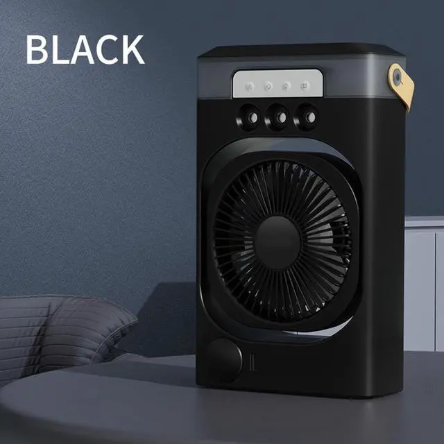 This portable mists fan combines cooling airflows, adjustable humidification, and colorful LED lighting in a small design with 3 speed modes and 120° directional control
