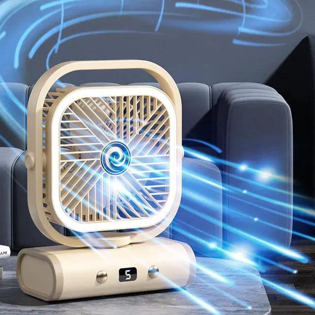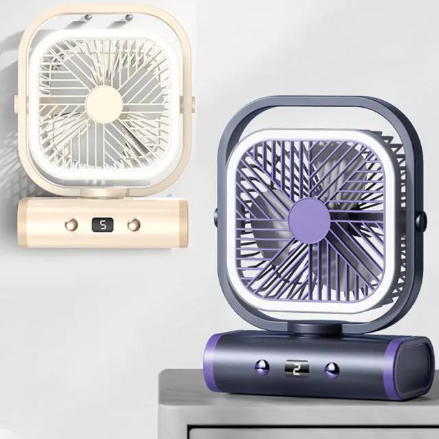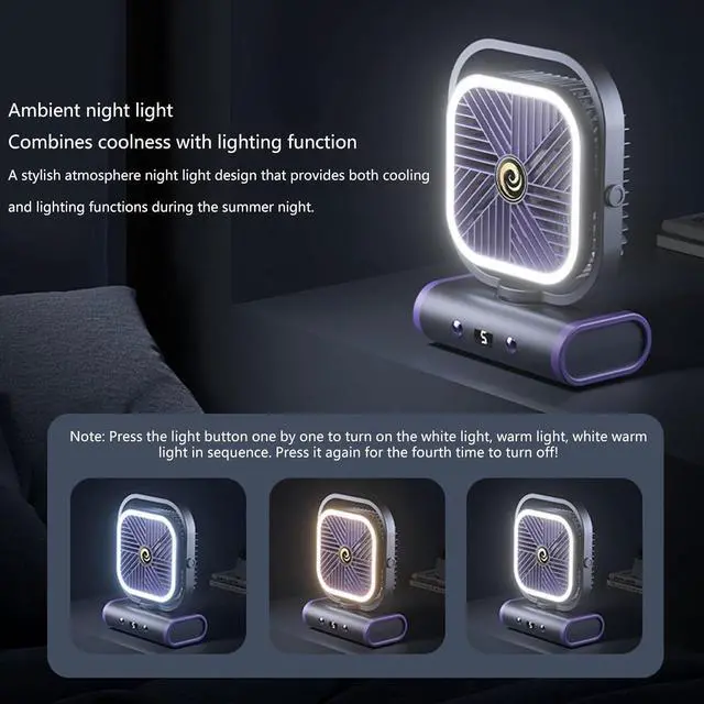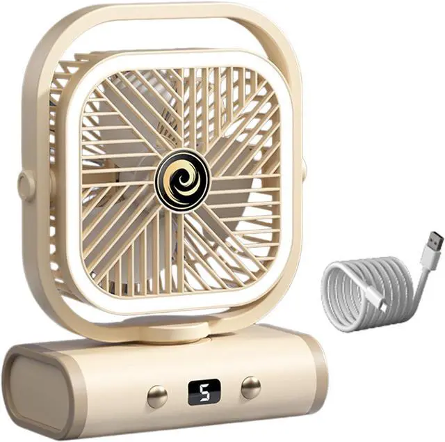 USB Rechargeable Desk Fan 5 Speed Quiet with LED Night Light for Office Desktop Home and Travel Use for Dorm Room and Office