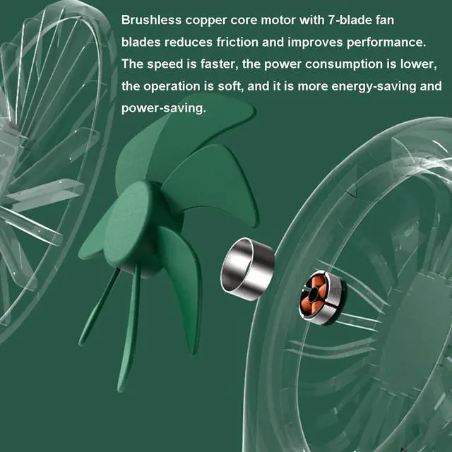 PORTABLE FAN: Three-Speed?? Adjustment&Long Working Time Built-in non-removable 1200mAh high-capacity battery, low-grade air supply can last up to 6 s, USB power supply interface, convenient and practical, recyclable charging.