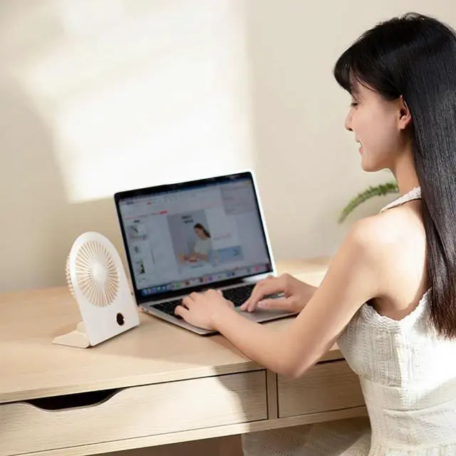 The USB desk fan is equipped with a rechargeable battery for indoor and outdoor use. Whether you're working at your desk or outdoors, this fan will keep you cool and refreshed