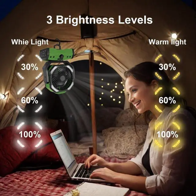 [Ultra Bright LED Camping Light]Two light source settings: warm light and white light both with 3 brightness levels for a wide range of uses, the warm light setting can be used as a night light while you sleep, and the minimum brightness of the white light emits a soft, non-glaring light, and the maximum brightness illuminates the entire tent, allowing you to focus more on your work in the darkness/at night, making it an ideal choice for night camping, hiking and travelling.