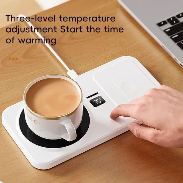 Wireless Charging Integration: The mug warmer supports wireless charging for phones and watches, reducing cable clutter while keeping your beverages warm, making it ideal for desks and bedside use, enhancing convenience in daily routines