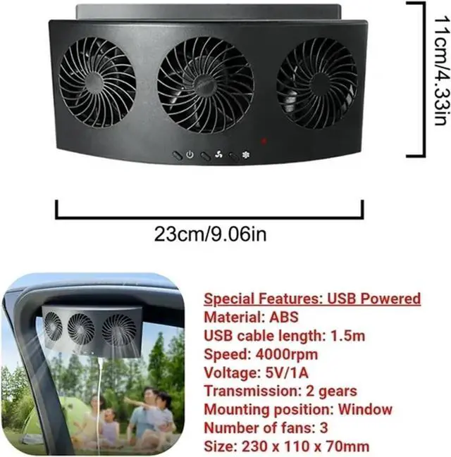 2. Solar-Powered: This solar-powered air circulation fan improves ventilation by increasing exhaust speed, effectively cooling your car's interior. It's an eco-friendly and cost-effective solution that helps keep your car cool and comfortable.