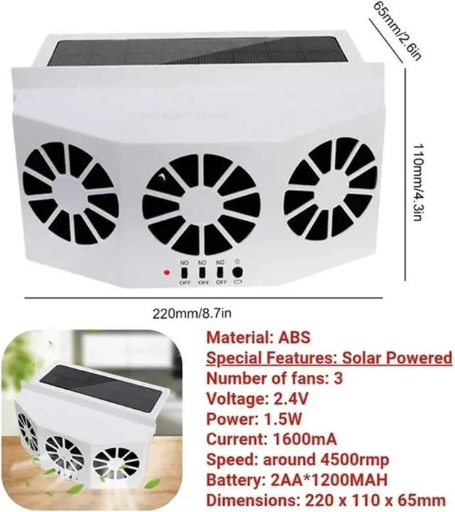 2. Solar-Powered: This solar-powered air circulation fan improves ventilation by increasing exhaust speed, effectively cooling your car's interior. It's an eco-friendly and cost-effective solution that helps keep your car cool and comfortable.