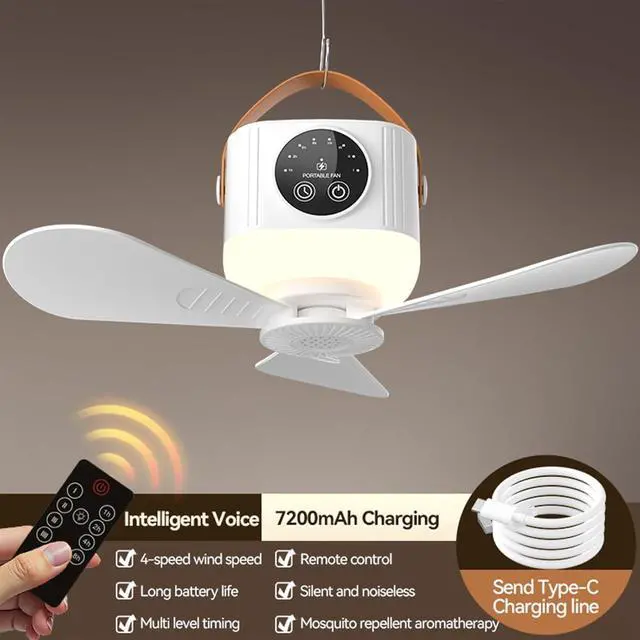 The convenience of a multifunctional USB rechargeable remote control fan light with a powerful 3600mAh/7200mAh battery is perfect for both indoor and outdoor use