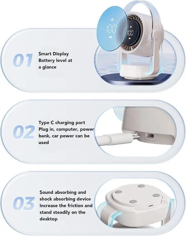 100 Adjustable Speed Settings: This USB fan boasts 1 to 100 adjustable wind speeds to cater to your varying needs. It comes with a gentle night light and a timer function, with the longest timing set for 9 hours.