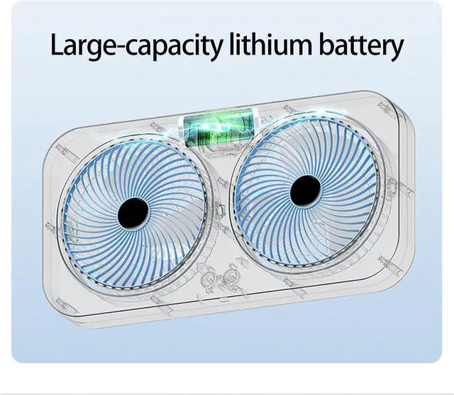 Equipped with USB rechargeability and innovative hanging design, this lightweight fan ensures convenient power option and installation in tents, dorm room, or gym space.