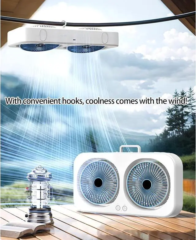 Equipped with USB rechargeability and innovative hanging design, this lightweight fan ensures convenient power option and installation in tents, dorm room, or gym space.