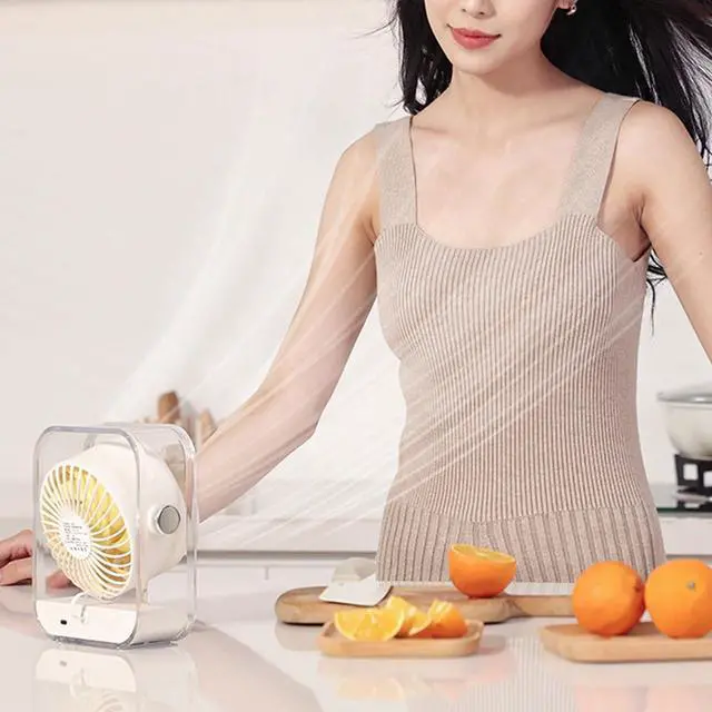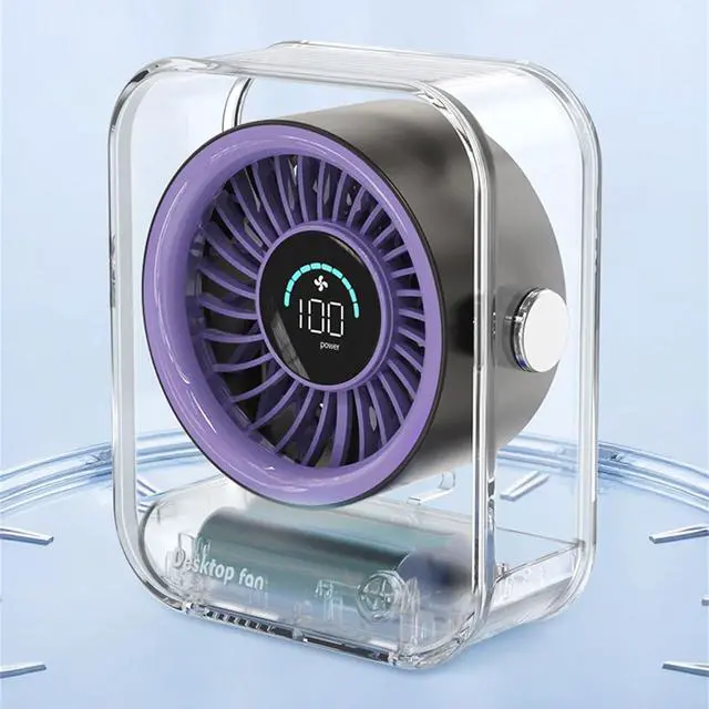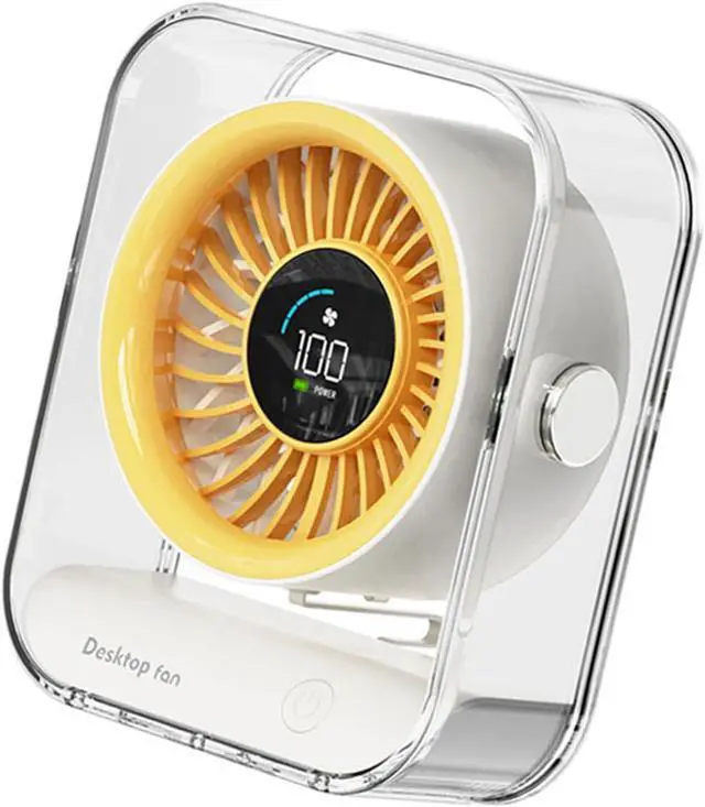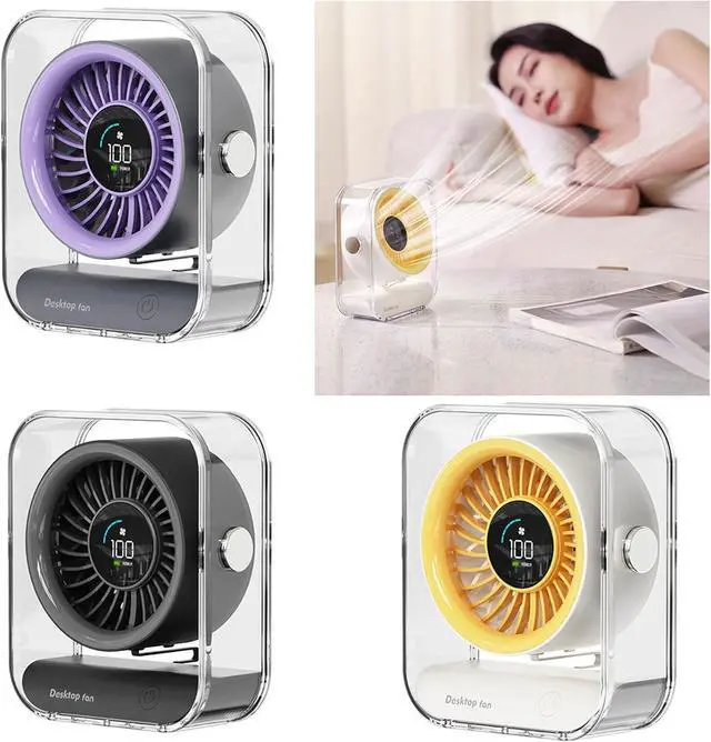 powerful airflows and quiet cooling with this USB rechargeable desk fan featuring a 3000mAh battery, digital display, and floating design for enhancing air circulations