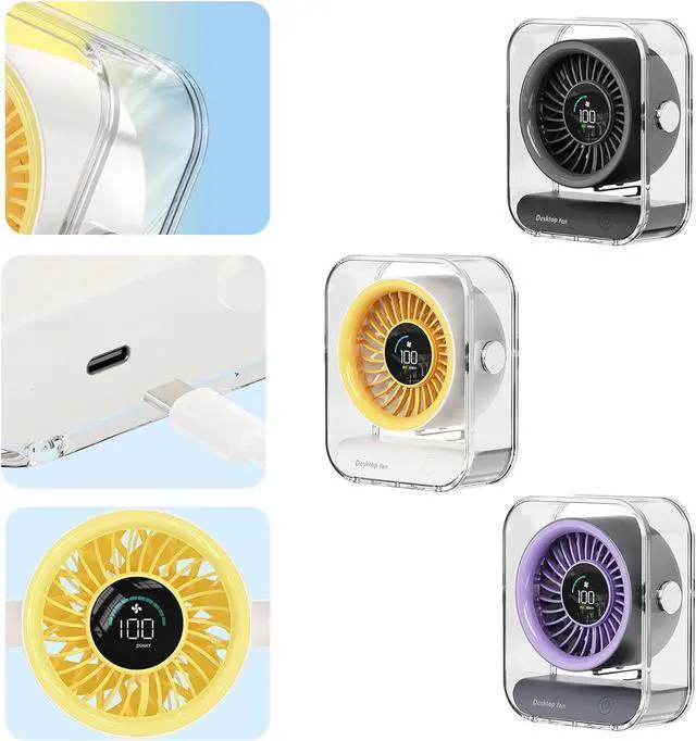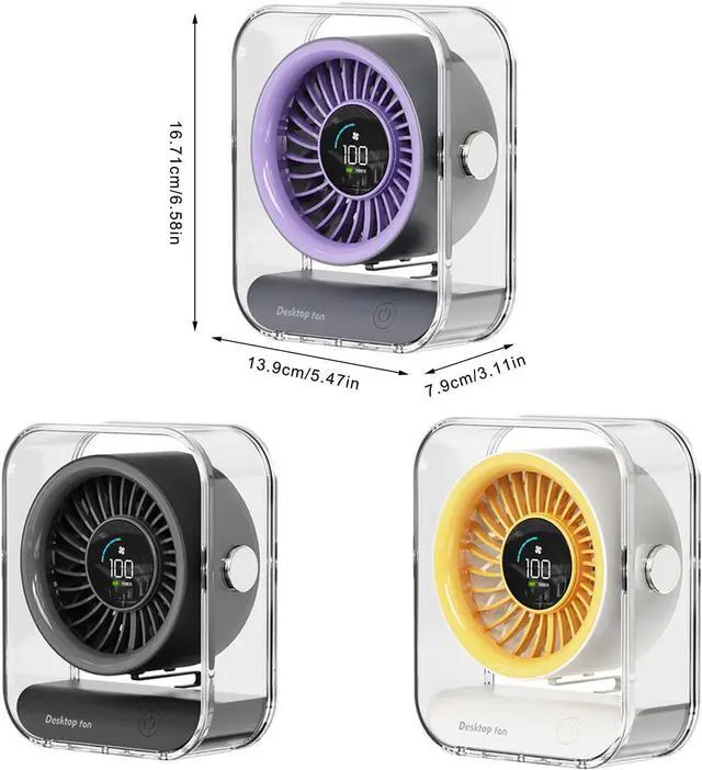 powerful airflows and quiet cooling with this USB rechargeable desk fan featuring a 3000mAh battery, digital display, and floating design for enhancing air circulations
