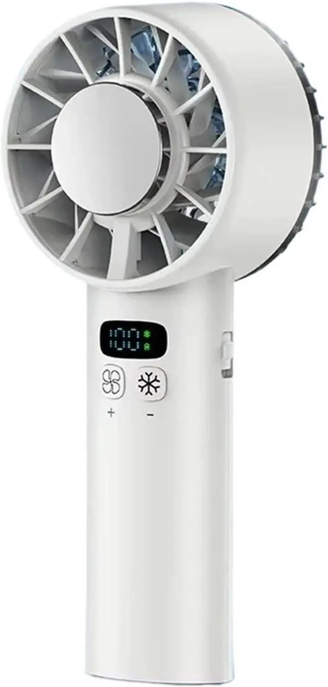 Mini Handheld Fan, Portable Mini Fan Handheld Fan Ice Compress LED Display Ice Face 100 Wind Speeds 5200mAh USB Rechargeable Battery Fan,for Travel/Outdoor/Camping(White)