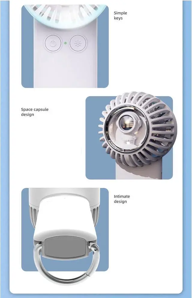 COLD COMPRESSION FUNCTION: The new handheld fan uses semiconductor cooling material, which quickly cools down in 3 seconds. Unique cool and wet cloth feature allows you to cool all parts of your body (where away from your hair). When you exercise and sweat, place your fan on the ice of your face, it will immediately reduce the temperature of your skin and release edema